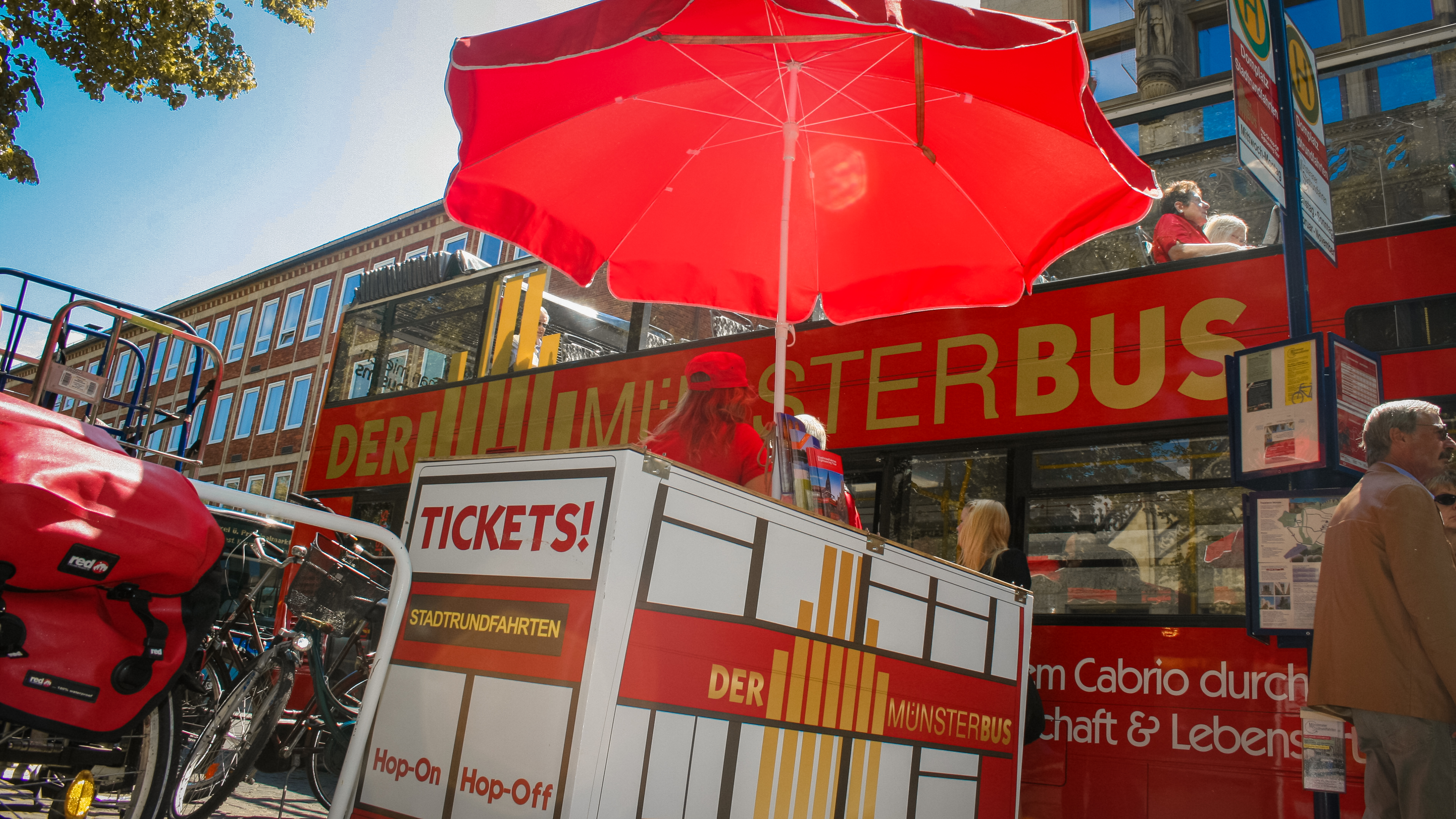 "Hop-On Hop-Off" bedeutet: Sie können zu jeder Zeit und an jeder der Haltestellen aus- und wieder einsteigen. Die einstündige Stadtrundfahrt eröffnet Ihnen die Möglichkeit, Münster in ihrer ganzen Vielfalt kennenzulernen.